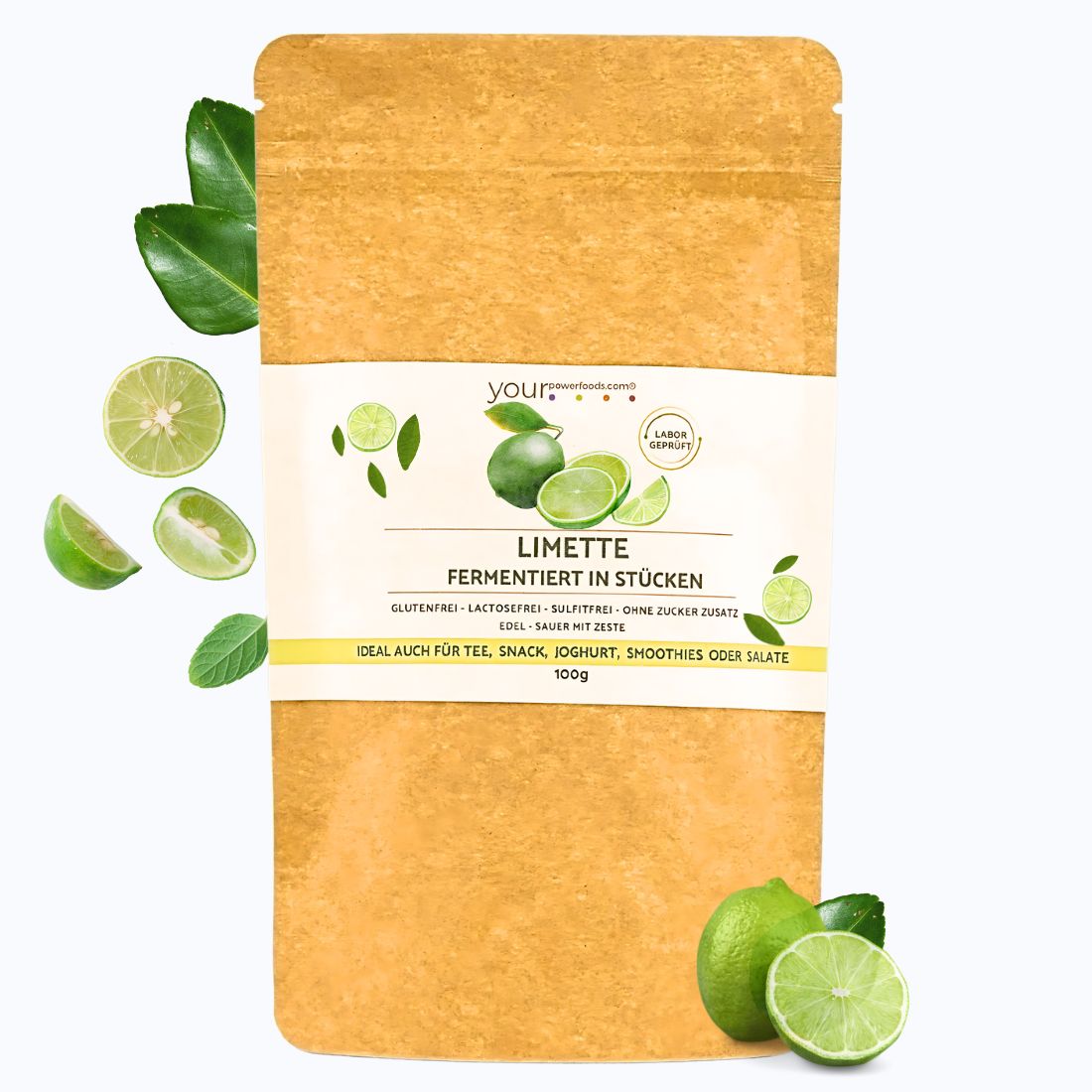 1 x 100 g fermentierte Limette (Stücke) – erhaltene Ballaststoffe & sekundäre Pflanzenstoffe, erfrischend-säuerlich.