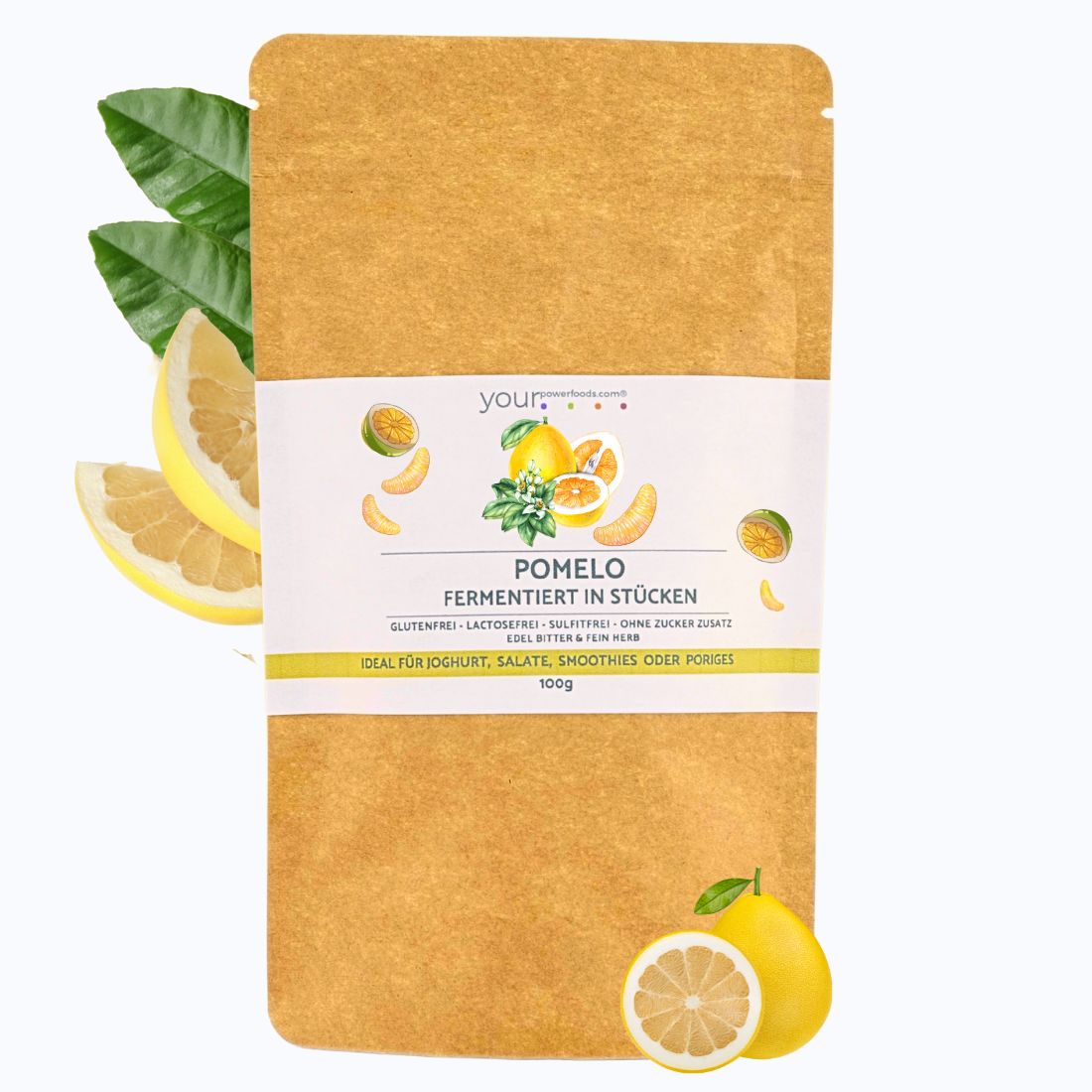1 x 100 g fermentierte Pomelo (Stücke) – reich an Ballaststoffen und natürlichen Antioxidantien.