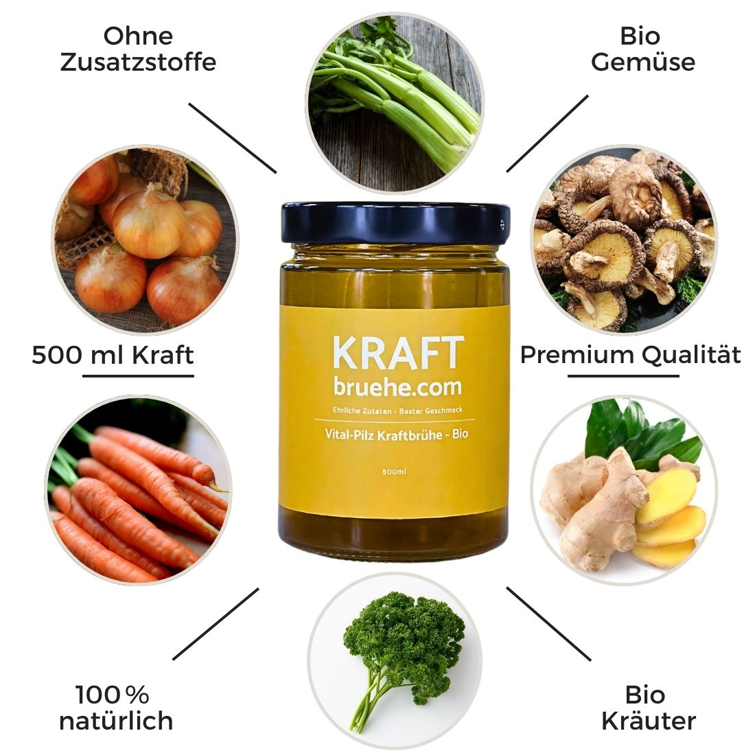 18 × Vital-Pilz-Brühe (0,5 l / Stück) – nährende, leicht verdauliche Mahlzeitenbasis, die dein Verdauungssystem entlastet und mit wertvollen Pilz- & Kräuterextrakten versorgt.