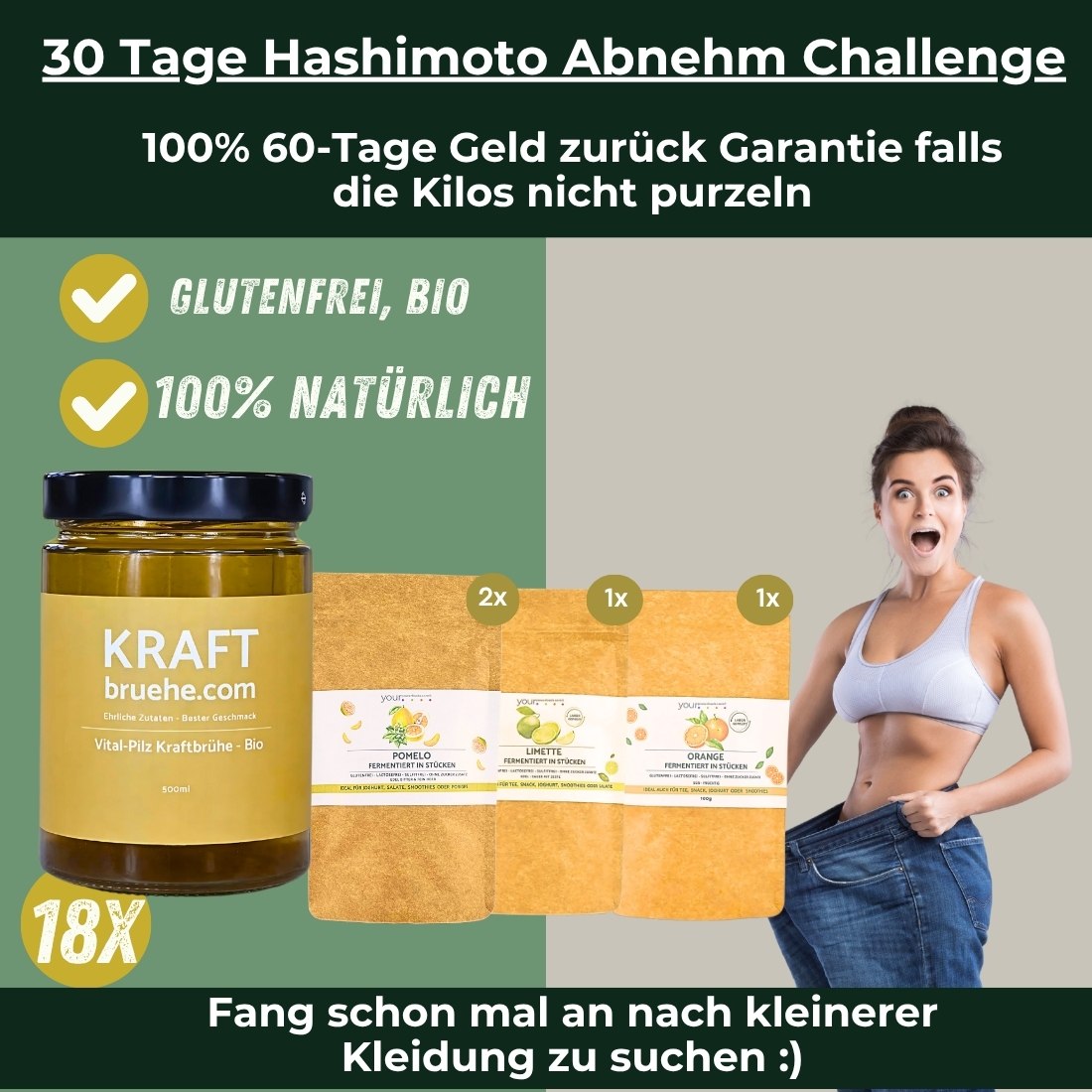 Dein Körper hat dir lange genug zugeflüstert. Es ist Zeit, ihm zuzuhören und zu handeln. Das Hashimoto Abnehmpaket ist dein Wegbegleiter – entwickelt, um deinen Körper zu unterstützen, nicht gegen ihn zu kämpfen.
