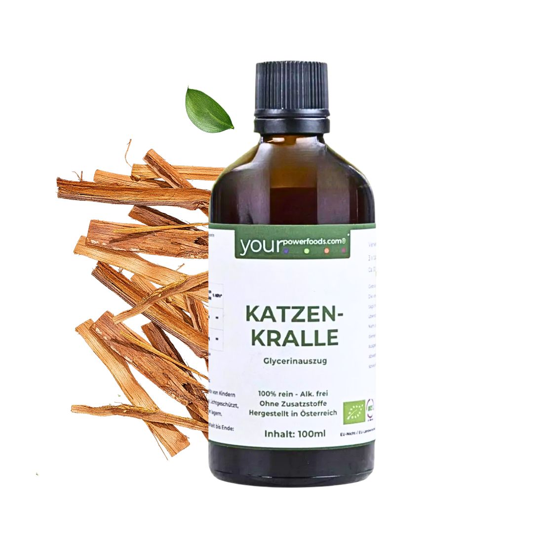 Rein pflanzliches Glycerin aus Bio-Leinsamen, Reinstwasser, Katzenkrallerinde getrocknet