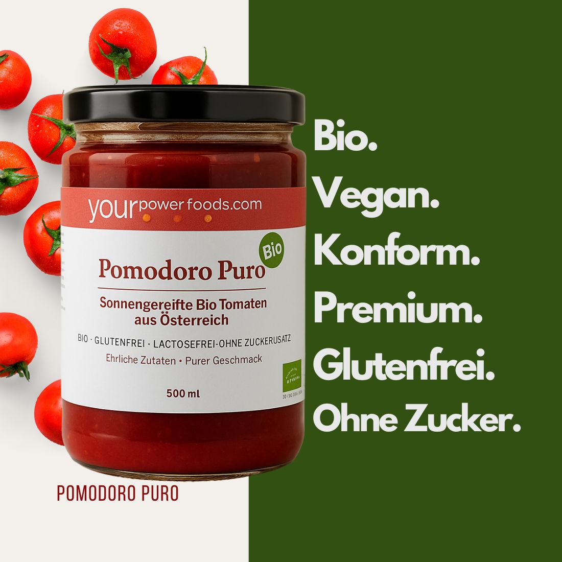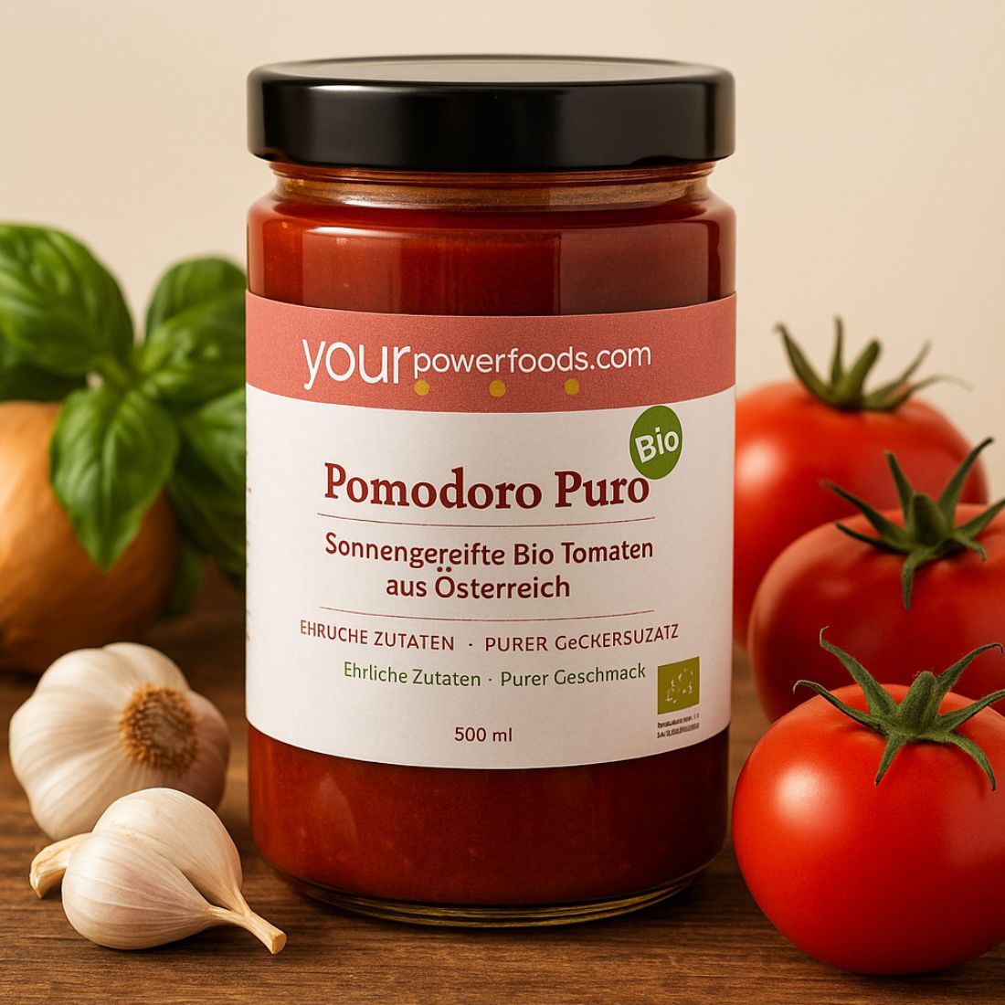 Reiner Geschmack aus der Natur – hergestellt aus sonnengereiften Bio-Tomaten aus Österreich.