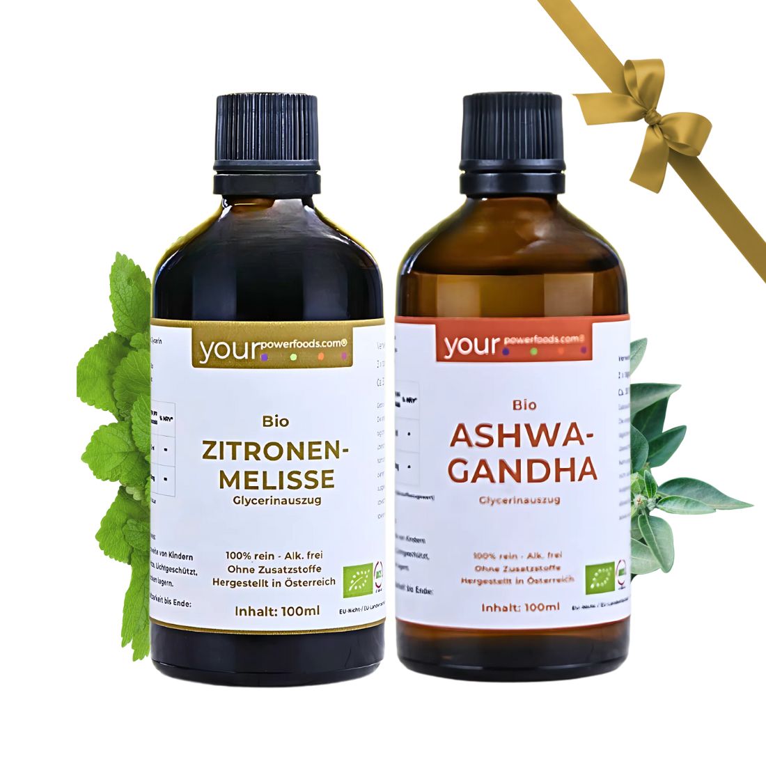 Dieses Wohlfühl-Bundle vereint zwei hochwertige, alkoholfreie Pflanzenextrakte in Bio-Qualität – Ashwagandha-Tinktur und Zitronenmelisse-Tinktur – sowie dreimal Gemüsebrühe für eine nährende, wohltuende Ergänzung im Alltag.
