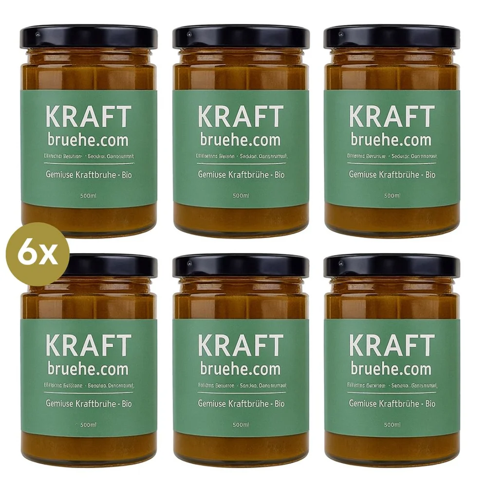 Gemüse Kraftbrühe – Premium Bio, 6×500 ml – Reiner Geschmack. Reine Zutaten.